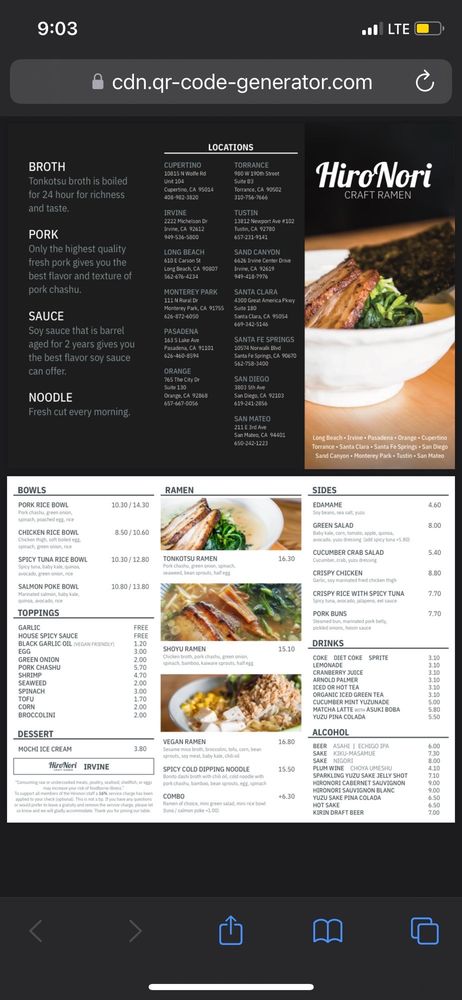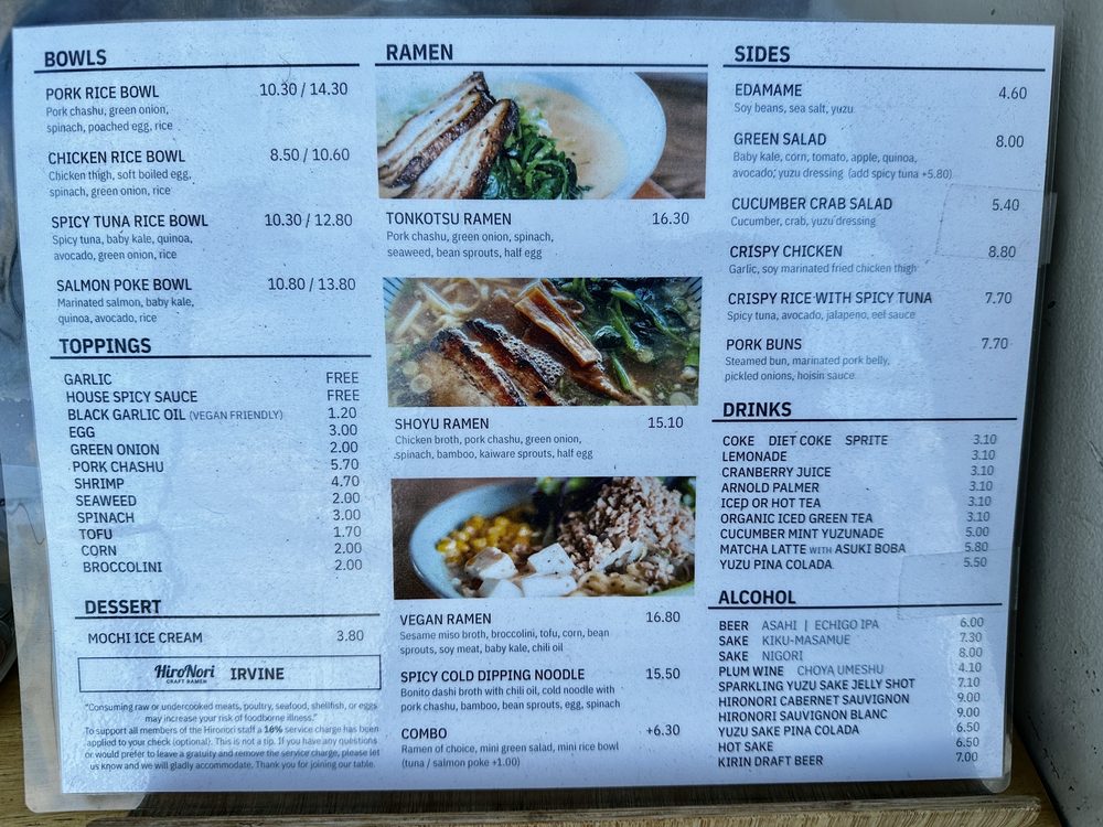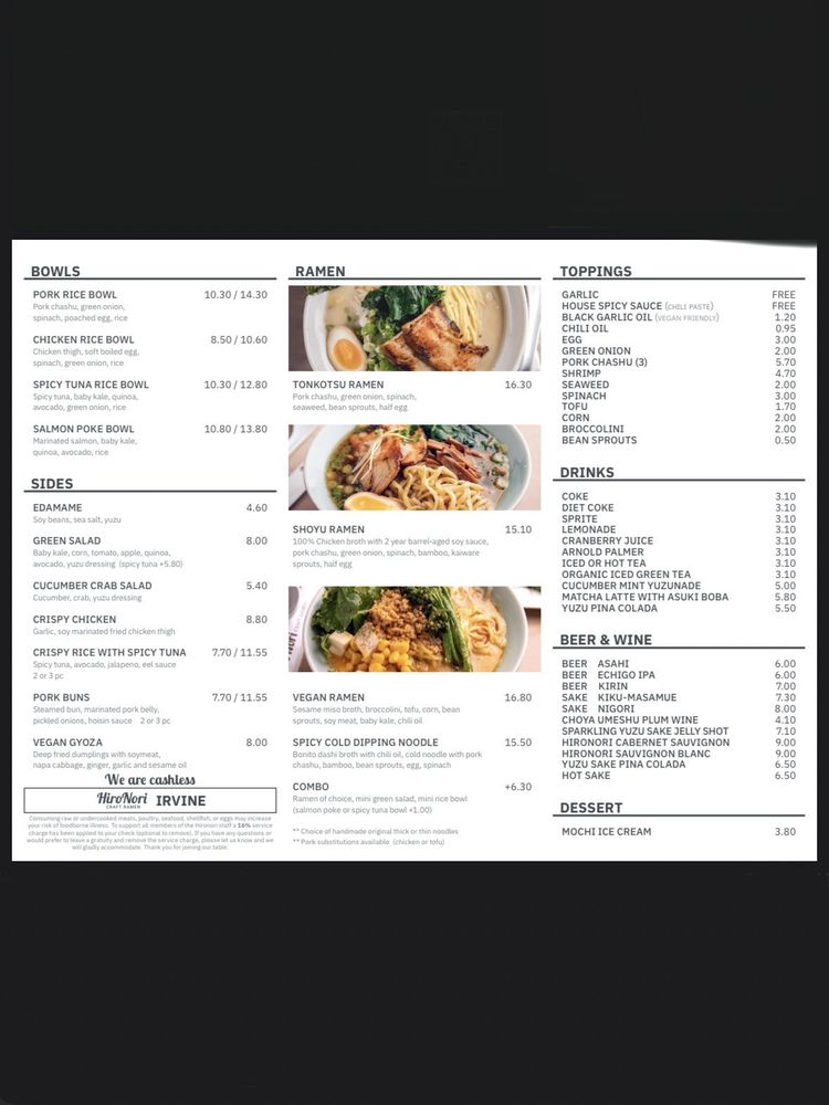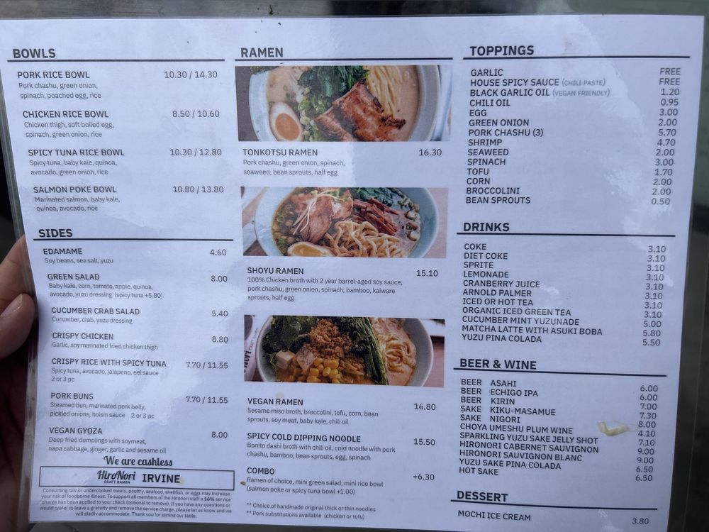 HiroNori Craft Ramen - Irvine Menu (Update 2025)